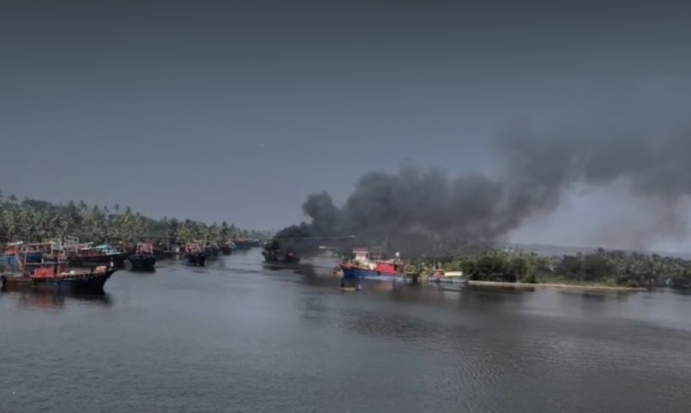കൊല്ലം കാവനാട് ബോട്ടുകള്ക്ക് തീപിടിച്ചു; പ്രദേശത്ത് കനത്ത പുക