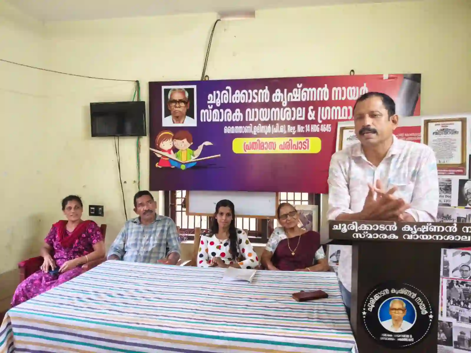 തൃക്കരിപ്പൂർ:ചൂരിക്കാടൻ കൃഷ്ണൻ നായർ സ്മാരക വായനശാല വനിതാ വേദിയുടെ നേതൃത്വത്തിൽ പുസ്തക ചർച്ച നടന്നു. പ്രശസ്ത സാഹിത്യകാരി കമലാ സുരയ്യയുടെ നീർമാതളം പൂത്ത കാലം എന്ന പുസ്തകം ഗ്രന്ഥശാല സെക്രട്ടറി പി. രാജഗോപാലൻ പരിചയപ്പെടുത്തി. സ്ത്രീത്വത്തിൻ്റെസ്വരം, സ്ത്രീസ്വാതന്ത്ര്യം,, സ്ത്രീജീവിത യാഥാർത്ഥ്യങ്ങൾ സ്വതന്ത്ര രചന എന്നീ നിലകളിൽ ഏതൊരു സ്ത്രീയും വായിച്ചിരിക്കേണ്ട പുസ്തകമാണ് നീർമാതളം പൂത്ത കാലമെന്ന് പുസ്തക ം അവതരിപ്പിച്ചു കൊണ്ട് അദ്ദേഹം സംസാരിച്ചു. മാർച്ച് 18 ന് വനിതാവേദിയുടെ നേതൃത്വത്തിൽ ഇഫ്താർ വിരുന്ന് ഒരുക്കുവാൻ തീരുമാനിച്ചു. […]