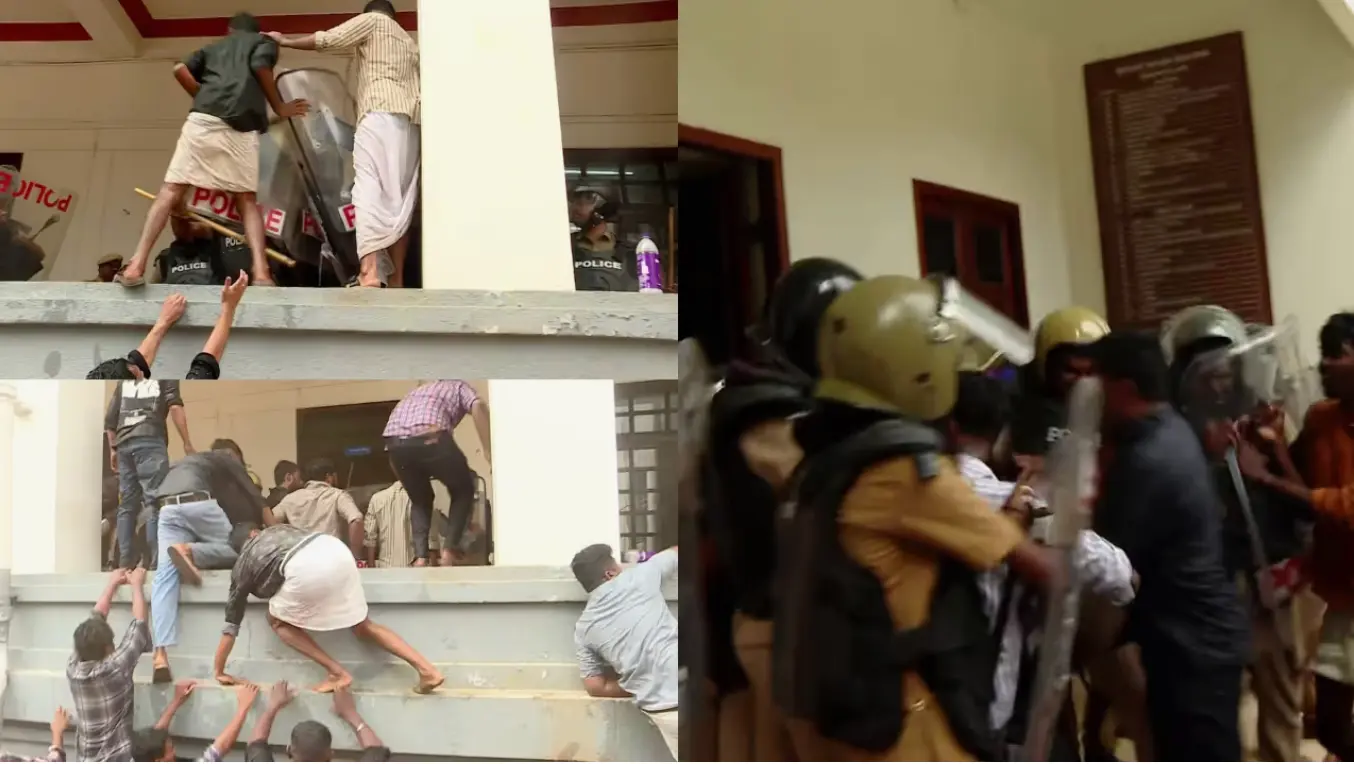 കേരള സർവകലാശാല ആസ്ഥാനം വളഞ്ഞ് എസ്എഫ്ഐ പ്രവർത്തകർ; ജലപീരങ്കിയും ബാരിക്കേഡും മറികടന്ന് പ്രതിഷേധം, വൻ സംഘർഷം