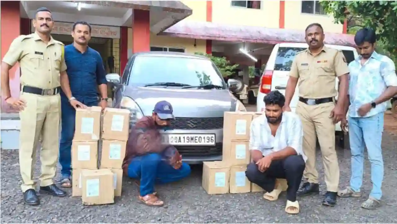 കാറിൽ കടത്തിയ 135 ലിറ്റർ ഗോവൻ മദ്യവുമായി രണ്ടുപേർ അറസ്റ്റിൽ