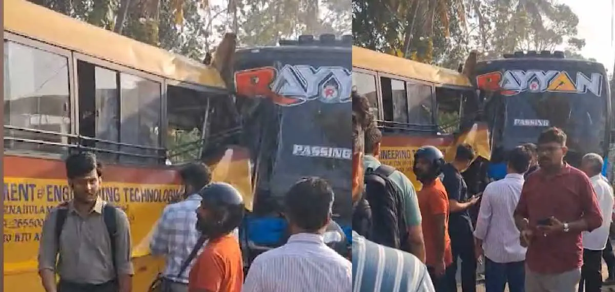 കോളേജ് ബസും സ്വകാര്യ ബസും കൂട്ടിയിടിച്ചു; നാല് വിദ്യാർത്ഥികൾക്ക് പരിക്ക്