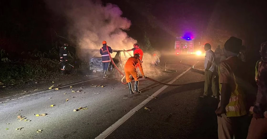 ശബരിമല തീർഥാടകർ സഞ്ചരിച്ചിരുന്ന കാറിനു തീ പിടിച്ചു; അപകടം പമ്പ ചാലക്കയത്തിനു സമീപം
