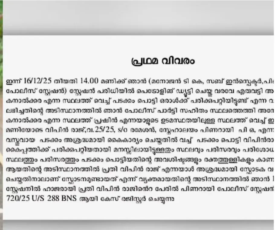 ബോംബ് പടക്കമായി!! സിപിഎം പ്രവർത്തകൻ്റെ കൈപ്പത്തി ചിതറിയ സംഭവം; അപകടം പടക്കം പൊട്ടിയെന്ന് പൊലീസ് എഫ്ഐആർ